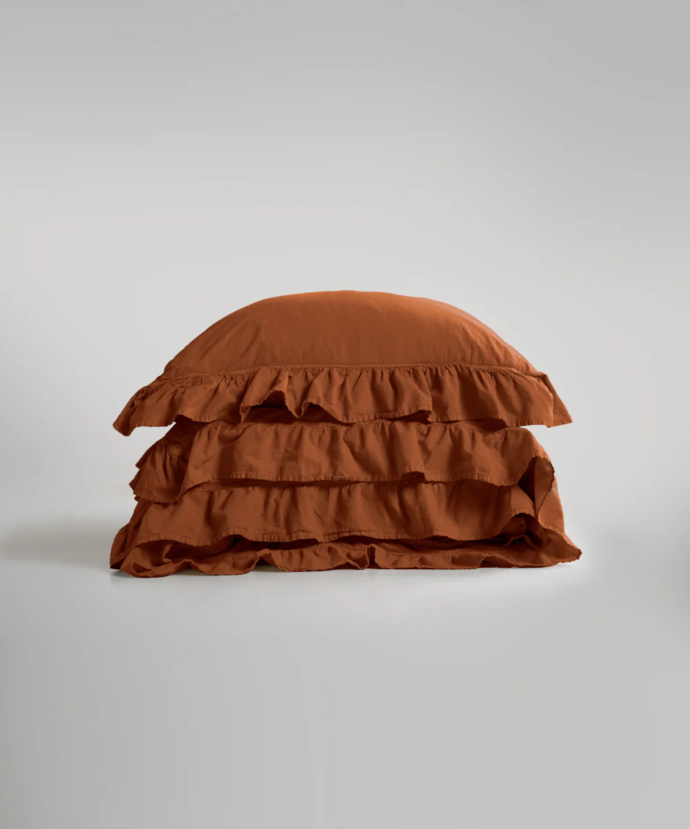 Ексклюзивна постільна білизна з міцного, зносостійкого матеріалу, яка має сертифікат Oeko-Tex® 100. У цьому комплекті тканина м'яка, міцна, не деформується, не сідає, не линяє і не вимагає прасування завдяки методу обробки Stonewash. Комплект однонотонний з пом'ятим ефектом, який надає затишку, комфорту, розслабленості при відпочинку, декорований рюшами на підковдрі та наволочках, застібка на ґудзиках, підходить для зими та літа.