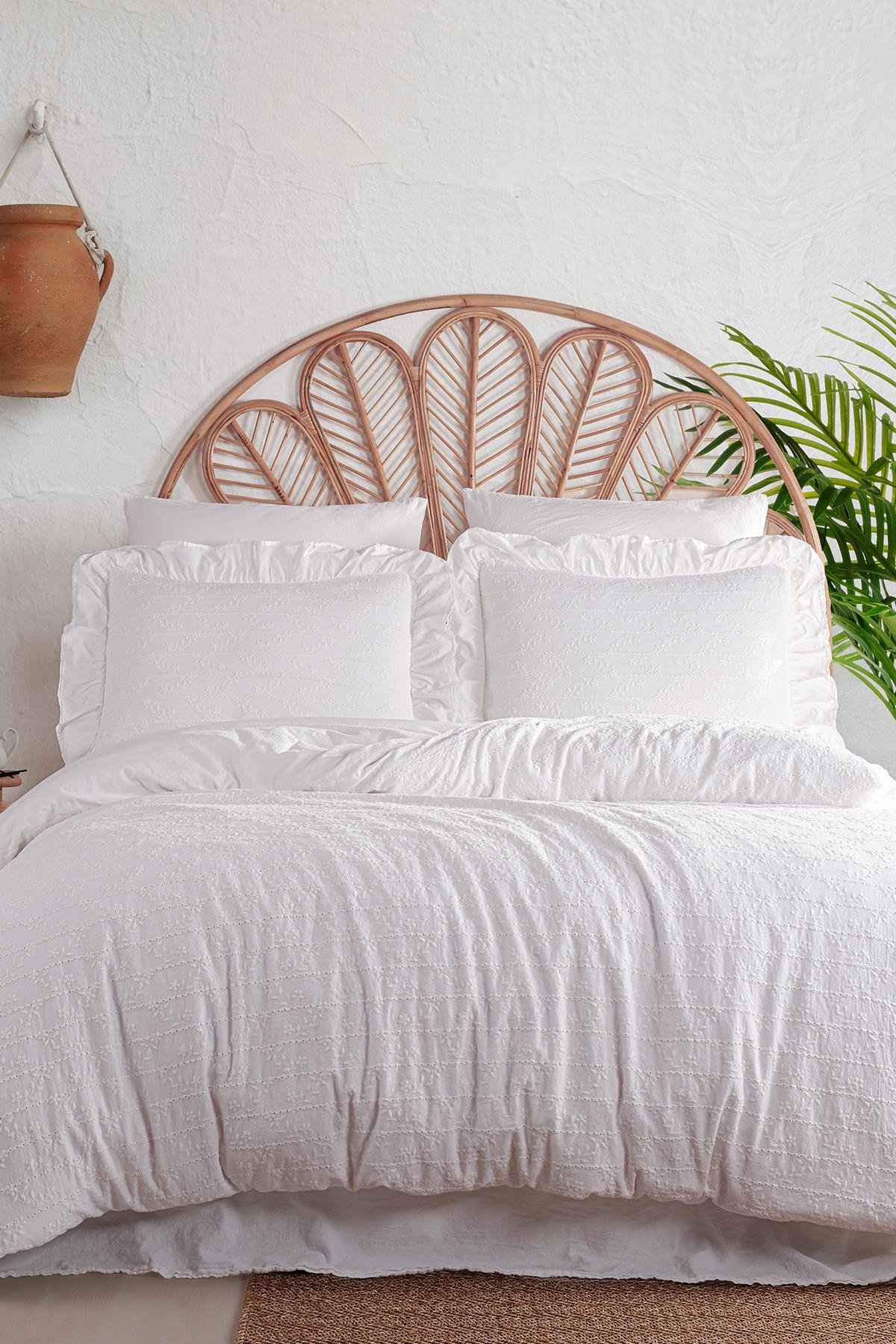 Resital White — вишукана постільна білизна преміум-класу, створена турецькими майстрами з використанням Jacquard Weaving Technology. Тканина з натуральної вареної бавовни має ніжну текстуру, природний блиск і відчуття розкоші на дотик.